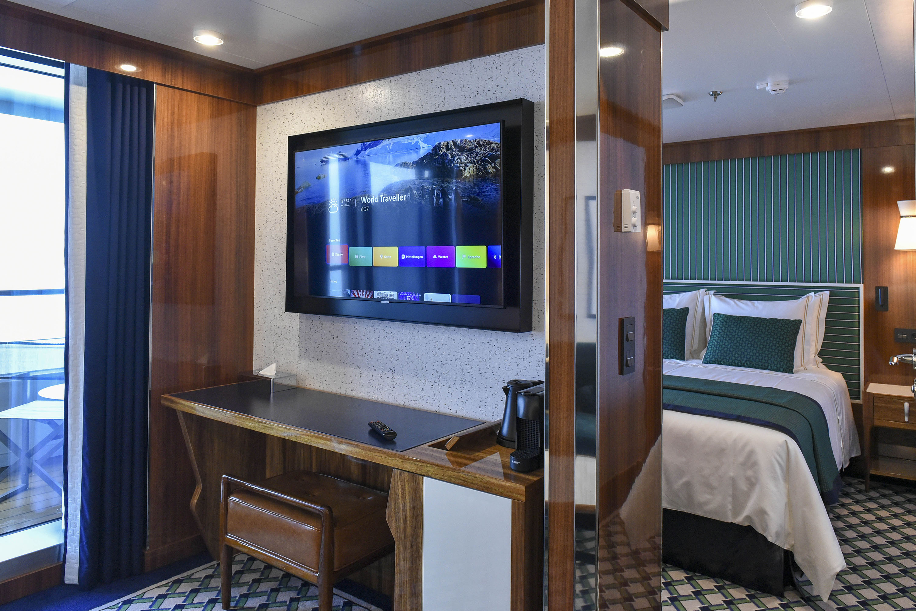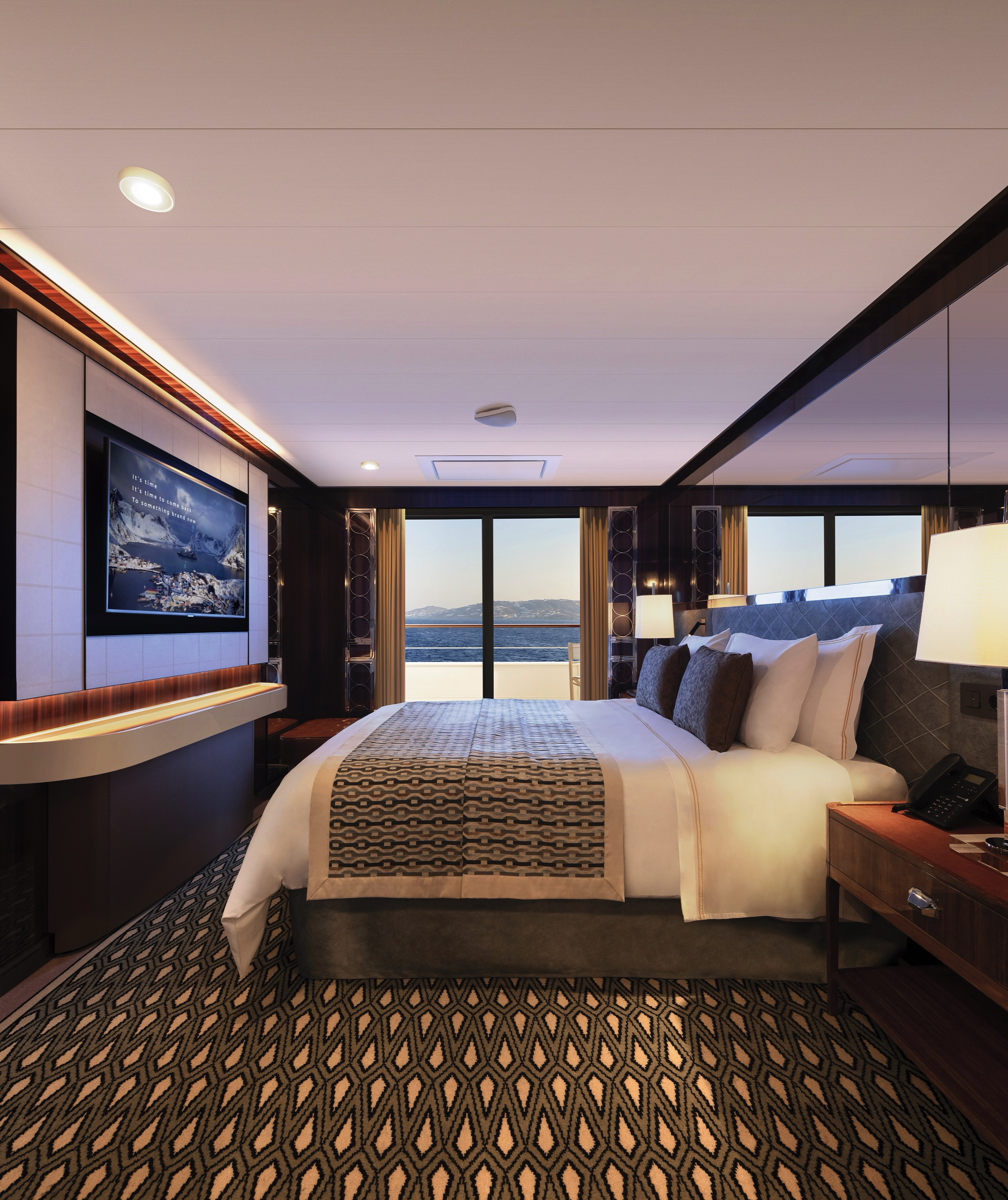 There are nine accommodation categories on World Navigator, all of which benefit from ocean views via a large panoramic window or a private balcony. Regardless of your suite or stateroom, your accommodation will feature everything you need for a truly unforgettable cruise holiday.