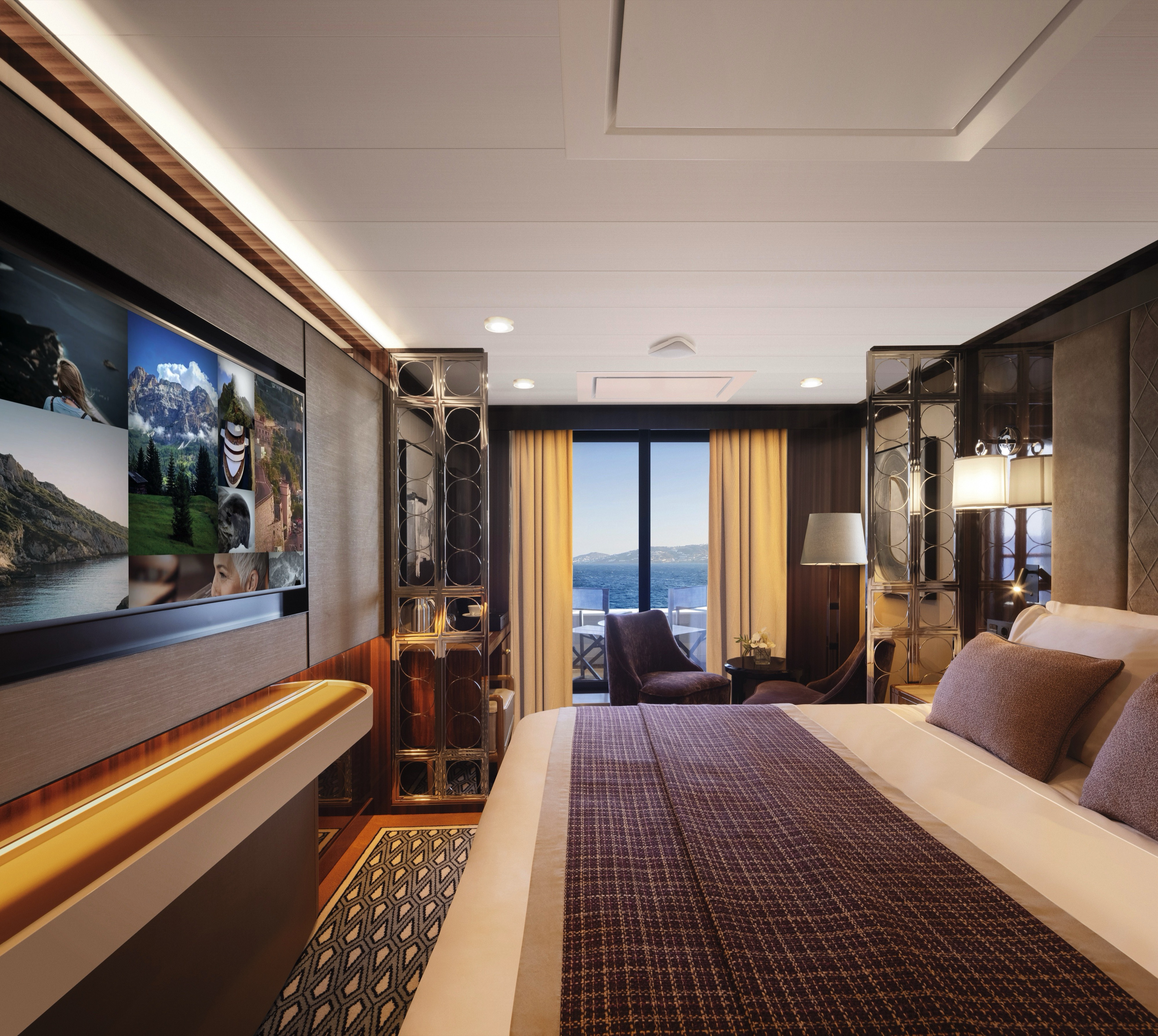 Regardless of category, all staterooms and suites have a sitting area with a desk, a flatscreen television, and a private marble bathroom with L’Occitane amenities. There’s ample room for storage and a spacious wardrobe. For your convenience, the accommodations also benefit from a mini-bar, complimentary robe and slippers, and 24-hour room service.