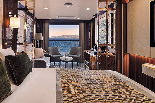 The Suites aboard World Traveller provide an elevated experience with private balconies, separate living and sleeping areas, and marble bathrooms with spa showers. Featuring walk-in wardrobes, minibars, and Nespresso machines, these suites offer luxurious comfort and personalised service, making them ideal for travellers seeking ultimate relaxation and indulgence.