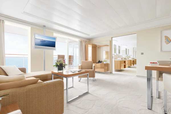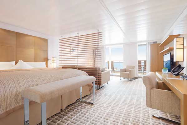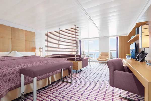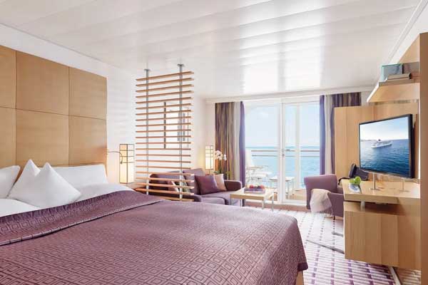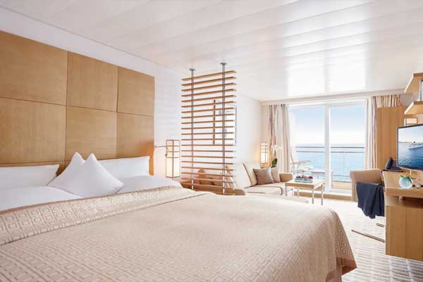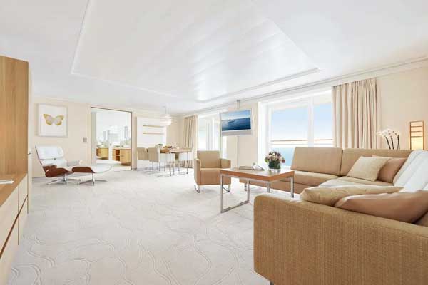 The suites aboard Europa 2 set a new standard in ocean-going comfort, blending understated elegance with contemporary design. Every suite features a private veranda, offering uninterrupted ocean views, as well as a generous living area that exudes a stylish, modern aesthetic. Expect high-end furnishings, spacious bathrooms with rain showers, and premium amenities such as a personal minibar, a tablet for onboard services, and a pillow menu for personalised comfort.