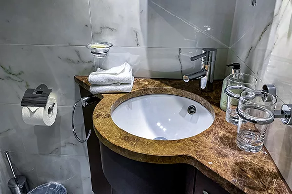 We also viewed one of the twin balcony staterooms, which featured both a French balcony and a step-out balcony. These are a good option for guests who enjoy private outdoor space. The only minor drawback was the absence of a kettle or coffee machine in the cabin, although hot drinks were always available in the Lounge.
