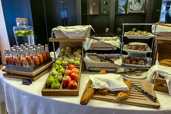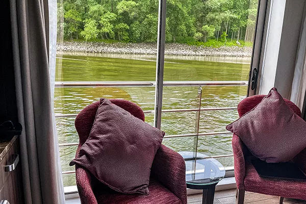 The welcome was immediate and personal. We were greeted with chilled glasses of champagne and ushered into the Lounge, a light-filled, beautifully presented space gently humming with soft piano music. The décor is bright and understated, with creamy tones, floral armchairs and comfortable seating that invites you to unwind. Our stateroom was not quite ready when we arrived, but the bar staff ensured we were looked after while we settled in and took in views of Budapest from the picture windows.