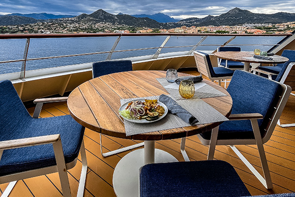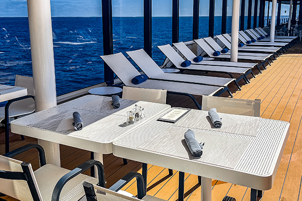 World Traveller Deck in the Lisboa Restaurant, Al Fresco Dining with View of the Mediterranean Sea in the background
