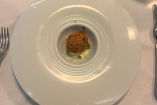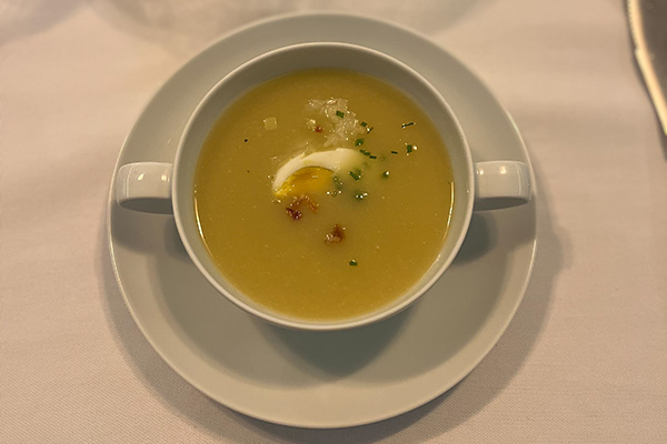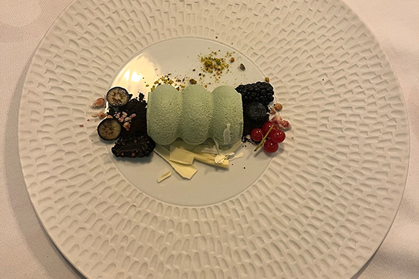 After the wine tasting, I participated in a ‘Meet Your Neighbour Cocktail’ event, mingling with fellow guests while enjoying cocktails and canapés. Dinner that night was a feast: onion soup, potato and sausage soup, rack of lamb with dauphinoise potatoes, and a glass of Muscat Du Cap-Corse wine instead of dessert, the perfect sweet replacement. The evening concluded with drinks (Espresso Martini, of course) and entertainment by musician William TM Hall at The Dome, recreating a New York City-style piano bar atmosphere.