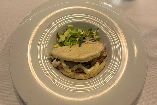 Returning to the yacht, I prepared for dinner, indulging in not one but two starters – a comforting chicken soup that reminded me of home, paired with a flavour-packed shredded beef bao bun that exceeded all expectations. For my main course, I couldn’t resist ordering both the coq au vin and the pad thai, each bursting with bold, unforgettable flavours. And dessert? I couldn’t resist the allure of the chocolate soup, a close contender for my favourite onboard treat.