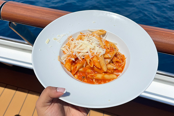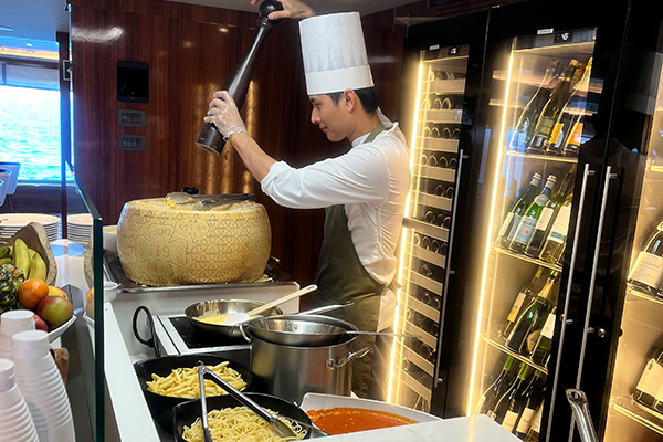 After my mini adventure, I returned to the yacht, knowing a delicious buffet awaited me – and it did not disappoint! One highlight was watching the chef craft fresh pasta right before my eyes – it was as mesmerising as it was mouthwatering. Perfectly al dente, it was pasta perfection!