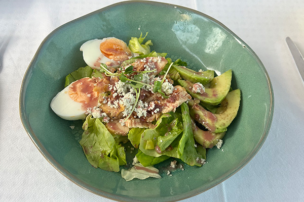 Our first stop was Palamos. My day started at Paula’s Pantry with an assortment of coffees, freshly pressed juice, and delicious immunity shots. I then ventured into Palamos town, enjoying wine, shrimps, and calamari at a local restaurant before heading back to the yacht for a buffet lunch in the Atlas Lounge. Dinner that night was a culinary delight: chicken Caesar salad, ribeye steak, and truffle fries followed by a nostalgic performance by guest artist Anne Steele, who brought the 70s and 80s to life.