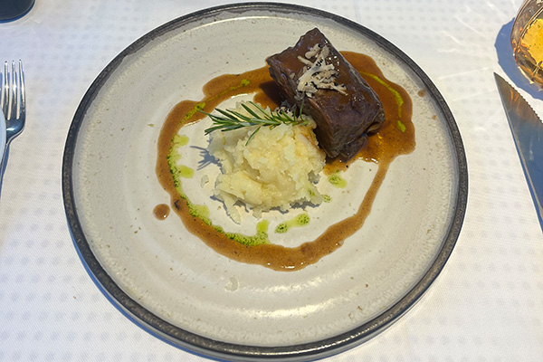 During a sea day en route to Propriano, I attended a morning meeting, explored the yacht, and relaxed by the pool on Deck 7 under the stunning weather. I even went to the jacuzzi, which was brilliant! Dinner in the Atlas Lounge featured a unique Quiche Lorraine soup, truffle beef wellington, and a delectable chocolate brownie. Our cruise director’s evening performance of beloved musical theatre songs, including hits from Les Miserables, Waitress, and Wicked, was spectacular.