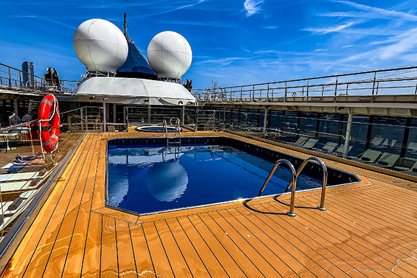 And who could resist the allure of the Pool Area on Deck 7? With its refreshing cold water pool (perfect for hot days) and a boiling jacuzzi (great for warming up after a swim), it was the ultimate spot for relaxation. Plus, the nearby open bar at 7 Aft made indulging in delicious treats like cheeseburgers and hot dogs—just what you might need for a satisfying poolside snack.