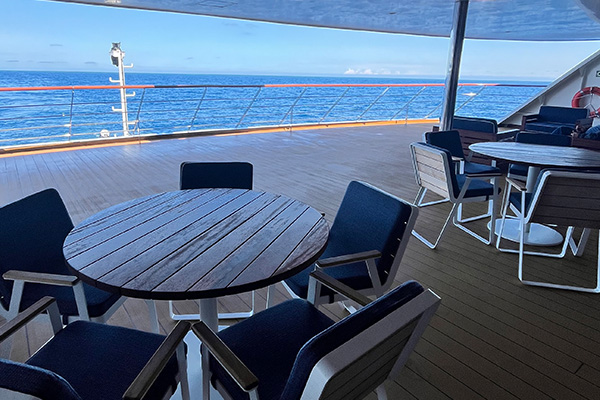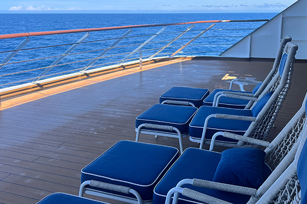 Let’s talk about the yacht’s cosy nooks and sunny spots! The Zephyr Lounge on Aft Deck 5 Terrace is a perfect blend of fresh air and friendly chats with fellow travellers. I then ventured to Deck 6 and discovered the serene Small Sundeck Terrace, a peaceful oasis where guests could unwind and soak up the sun.