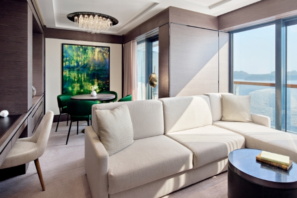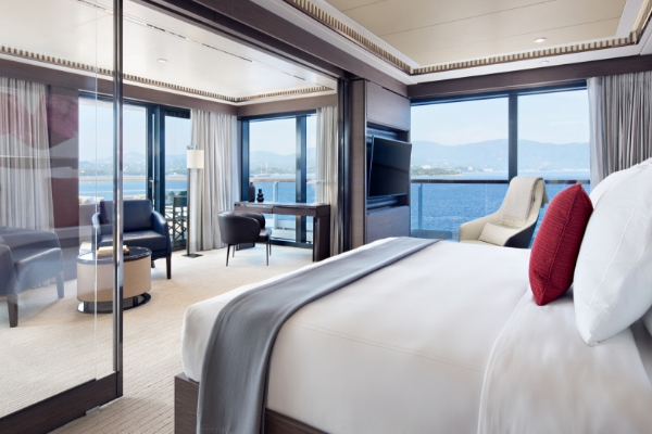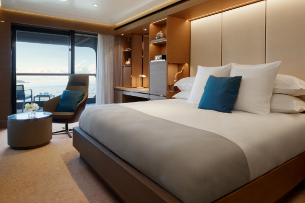 Evrima is an all-suite ship offering six accommodation categories. All suites on Evrima provide a private balcony, a king-sized bed, and the services of a Personal Concierge.