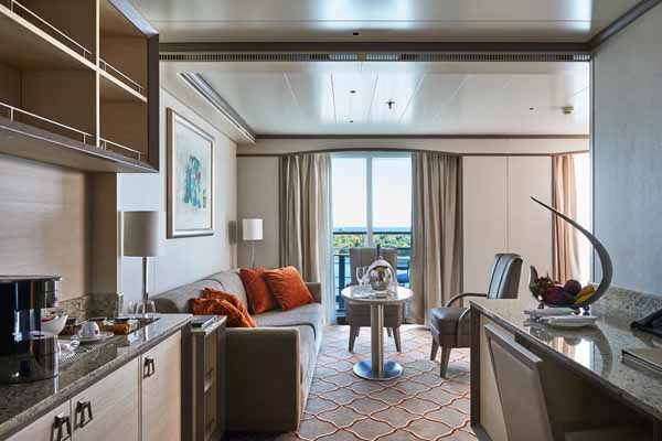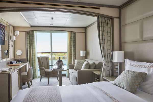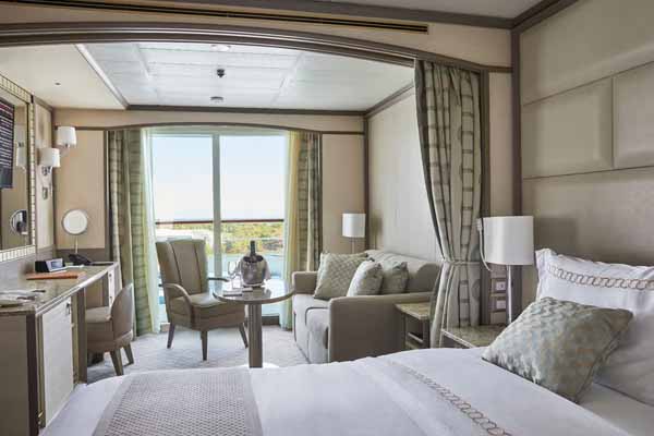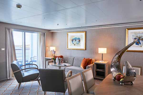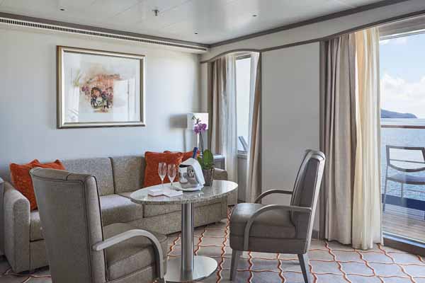 There are ten different suite categories on Silver Shadow. All of the suite categories boast ocean views via a private balcony, aside from the Vista Suite, which has a large picture window.