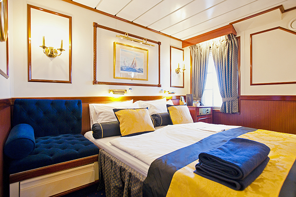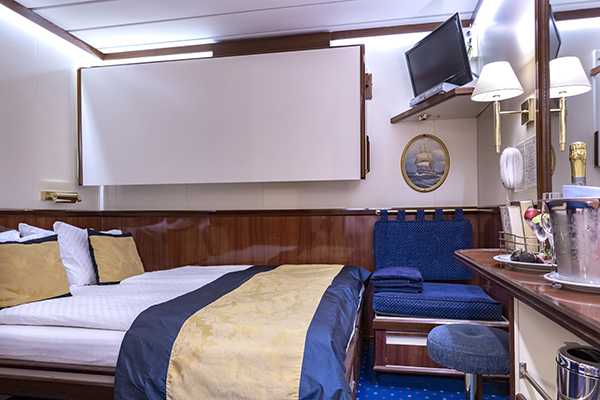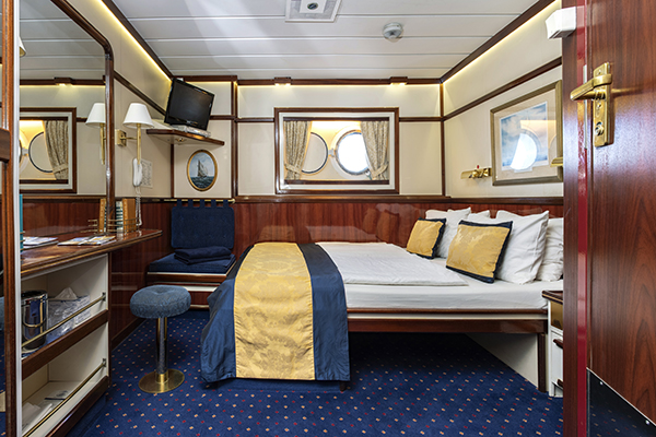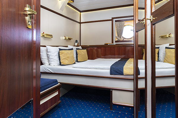 The Category 4 Outside Cabins on Star Clipper feature portholes that let in natural light, creating a bright and welcoming space. These cabins include a comfortable double bed or twin beds, making them a perfect choice for couples or solo travellers.